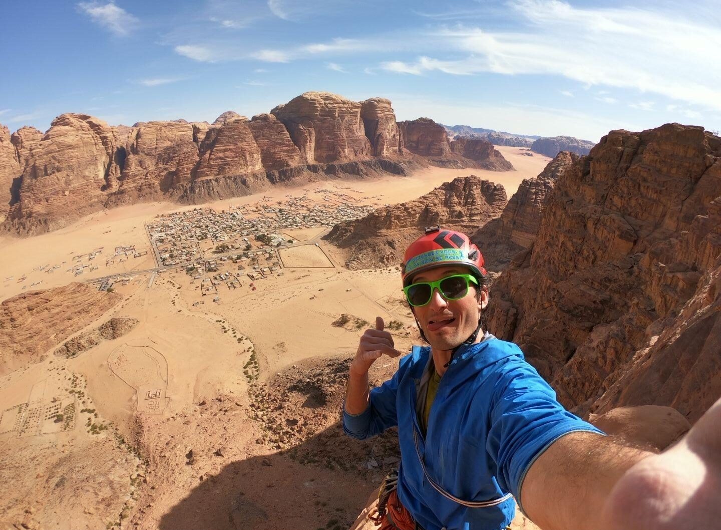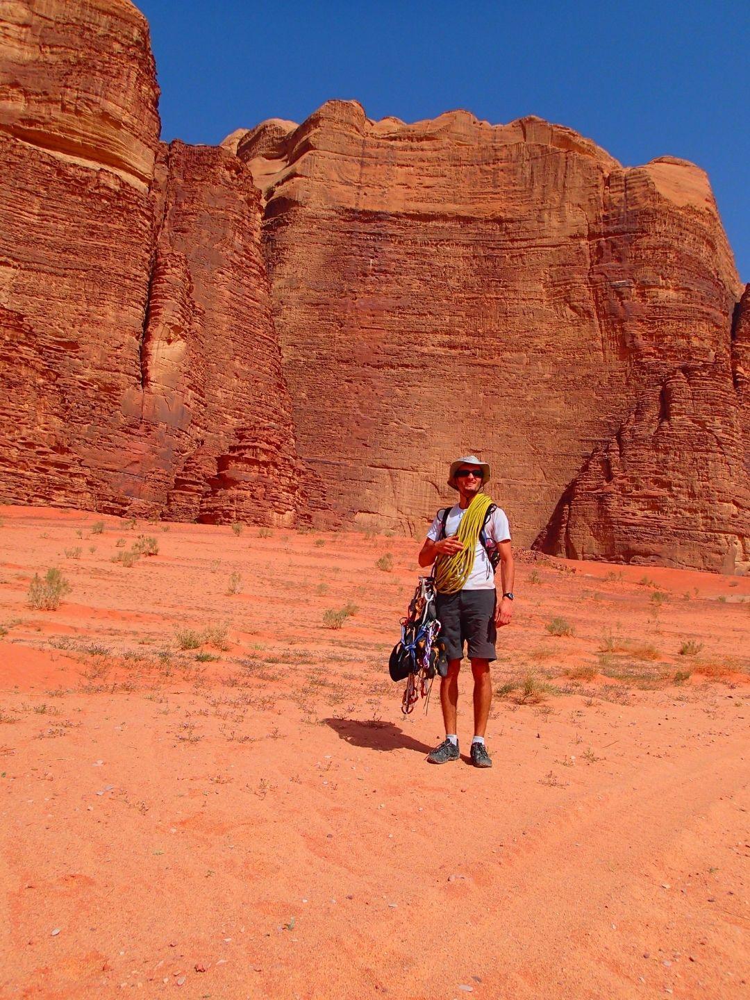 Mon premier voyage à Wadi-Rum date de 2013, j’ai découvert le grès sableux Jordanien ainsi qu’une belle école d’aventure pour la recherche d’itinéraire (surtout la descente) ainsi que la pose de protections.